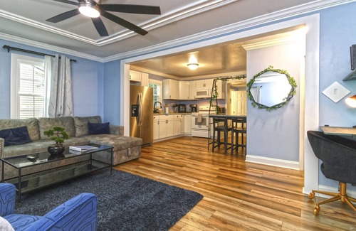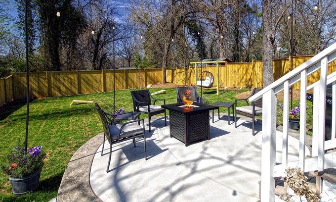 ✨Completely renovated & beautifully decorated open-concept home with luxury mattresses, 70in 4K TV, private patio, FENCED backyard w/ multiple swing chairs, comfortable outdoor seating, grill & fireplace!
