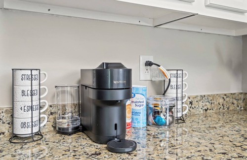 The 2nd Floor includes a comfy living room space with a 65 in Smart TV as well as a fully equipped kitchen with a dining area. There is also a Nespresso for coffee drinkers.