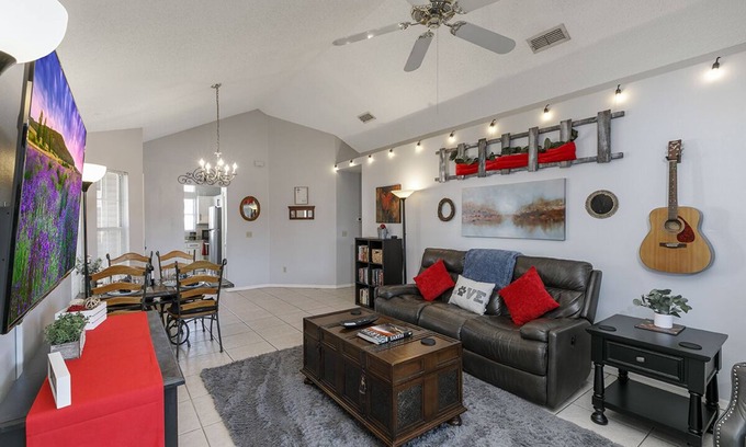 Cozy 4/2, on โญ Beautiful Lake, ๐งก Hot Tub, ๐ Chill Patio & ๐ฎ Game/Bunk Room! is located in Oviedo. Cozy 4/2, on โญ Beautiful Lake, ๐งก Hot Tub, ๐ Chill Patio & ๐ฎ Game/Bunk Room! provides accommodation, featuring Internet, Air Conditioner, TV, among other amenities. This House features Internet, Air Conditioner, TV, to make your stay a comfortable one.