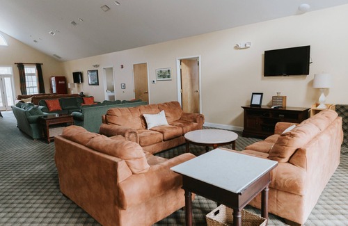 The Robin's Cottage has four bedrooms, each with two double beds and a private bath. The living area has three seating areas with two flatscreen TV’s and a pool table, perfect for spending time with friends and family. The rear patio overlooks the first hole of the Tom Fazio Executive Course.