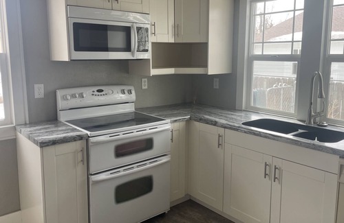 Our favorite thing about this small cozy home is from the back of the house you can see the hills of Makoshika. This house has been recently remodeled with a new kitchen and tiled showers. Kitchen included a double oven, garbage disposal, microwave and fridge. Living room has a 47in TV with a Firestick TV remote and an electric fireplace. The 2 bedrooms upstairs each have a queen size bed joined by a Jack and Jill bathroom. In the basement you will find the master bedroom with a queen and the 4th room with a full size bed. The second bathroom with a tiled walk in shower. Washer & Dryer available in the house.
