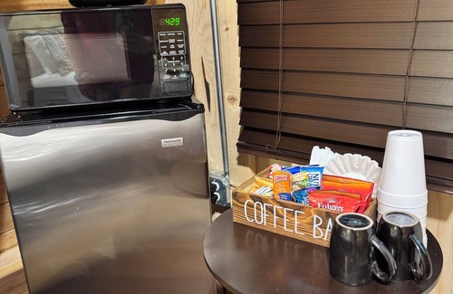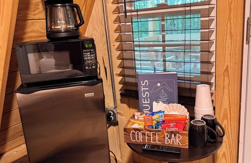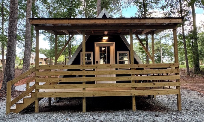 This brand-new, cozy A-frame cabin (256 sq ft) is nestled in the woods and perfect for your next getaway. It features two comfortable double beds for a relaxing stay. The bathroom includes a large shower. With amenities like WiFi, AC, and heating, guests can stay connected and comfortable throughout their visit. It also features a mini fridge, microwave, coffee maker, charcoal grill, and a fire pit. After a day on the lake, unwind on the peaceful porch with a beautiful view of the woods. Located approximately 1/4 mi from Broyles Landing & Recreation Area & only 5 mi from Green Pond Landing, with plenty of space to park your truck & boat. Just 15 mi to Clemson & Anderson. in Townville, enjoy what this 1-bedroom cabin has to offer.