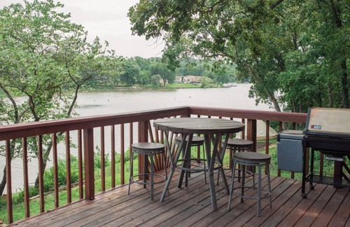 This 1970s lakefront cedar cabin is nestled into a wooded acre on Crystal Lakes, a spring fed lake with historic waters, 8 minutes from downtown Excelsior Springs and 45 minutes from downtown Kansas City, MO. This home is your haven to tune in to the rhythms of the seasons, to slow down and connect back with yourself or the one you love.
