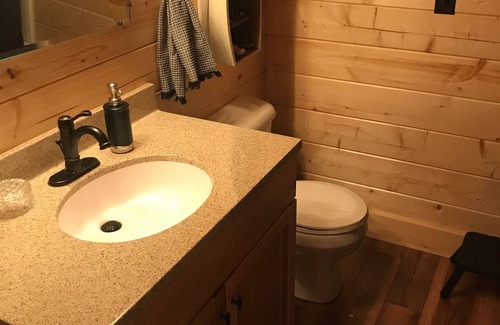 Great place, new construction A-Frame home on second tier from the lake. Free amenities such as putt putt, basketball, volleyball, tennis court/pickle ball court, softball field, 2 new playgrounds for the kiddos, frisbee golf, sand beach. An 18 hole golf course with cheap rates is also available. Within the gated community there are 2 restaurants, or use the cabins included oven, stovetop,microwave, fridge, dishes and dishwasher to bring your own food to cook. Has a traeger smoker(bring pellets and grilling utensils). Tv/DVD player for any movies(bring your own). Big countertop bar and the surrounding wood pine walls enhance that rustic cabin feel.