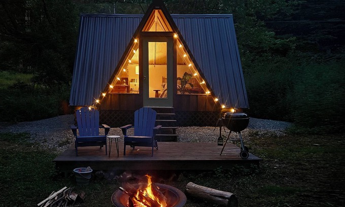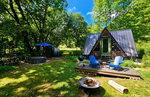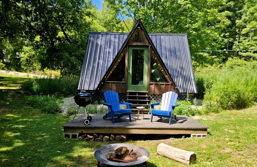 Cozy A-frame cabin surrounded by trees in Keene is located in Keene. Cozy A-frame cabin surrounded by trees in Keene provides accommodation, featuring Parking, Balcony/Terrace, Bedding/Linens, among other amenities. This Cabin features Parking, Balcony/Terrace, Bedding/Linens, to make your stay a comfortable one.