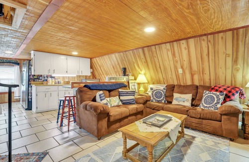 This elevated A-Frame cabin sits directly on the Satilla River, and offers a private dock perfect for fishing or enjoying the river views. Bring your boat, kayak, or float to launch at the Warner's Landing Boat Ramp less than .5 miles away and float down to your private dock. After a day of fishing or river exploration unwind on your riverfront porch, gather around the bonfire pit for s'mores, or snuggle in on the sofa and stream your favorite movie. Concrete pad under home with fans offers additional covered outdoor living space.