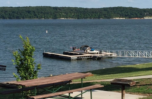 Newly remodeled retreat for a family or couple. Families with kids will love the loft! Relax on the covered porch or sun deck with lakeview. Located in a private, quiet area on an acre park-like lot. Neighborhood amenities include; swim dock, fishing dock, club house, playground and boat ramp just down the street. While no overnight boat slip is available, there is a nice pebble beach for landing your boat if you wish to keep in the water throughout the weekend. The large lot has plenty of trailer parking near the cabin. Plenty of sleeping space upstairs and down, great sun porch, large open living/dining area. Located between Duck Creek and Monkey Island with marinas, restaurants, and other amenities nearby via land or water. Families will enjoy large areas for outdoor activities, BBQ Smoker, picnic table, and easy lake access. Bring your boat! Ramp and beach parking included. RV / Camper AC Power and water available. Please note that we do not allow pets with no exceptions.