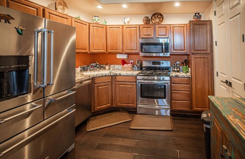 Enjoy the private covered deck upstairs for a glass of wine as you enjoy the beautiful desert sunsets or a cup of coffee as you watch the sunrise. On the patio below, spend an evening BBQing or just sitting outside gazing at the stars.