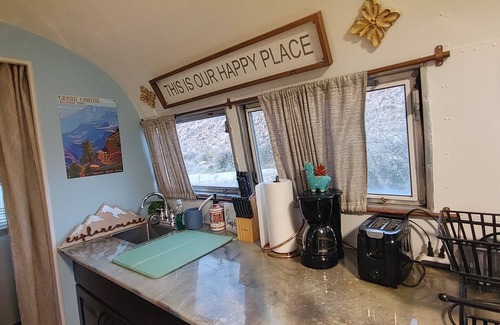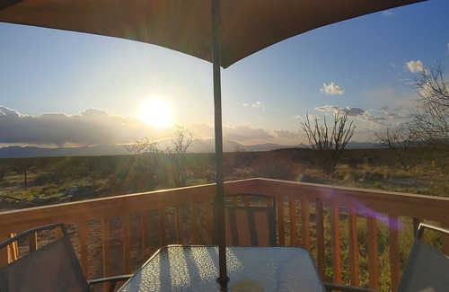 We do ask our guests be conservative with the use of water as it must be hauled in. There is a small water heater so quick showers are recommended. The stars are amazing! Wildlife frequents the area, so you may encounter mule/coues deer, coyote, giant jack rabbits or even the elusive mountain lion or bobcat. There is an abandoned 1880's adobe structure back in the canyon. Plenty of parking space beside the Airstream so you will have an unobstructed view out of the front of Kitt Peak National Observatory and the valley floor below.