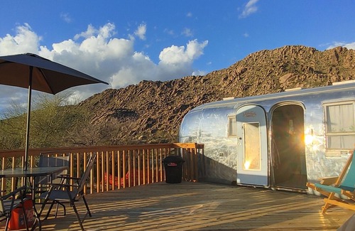 Experience The Romantic Saguaro Painted Western Sky In Our Timeless 1962 Airstream Oasis on a Private Nature Preserve Hidden from the Public behind 7000 acres of State Trust Land. This Desert Wonderland was left untouched for 34 years and now awaits your exploration. All the adventure is missing is you.