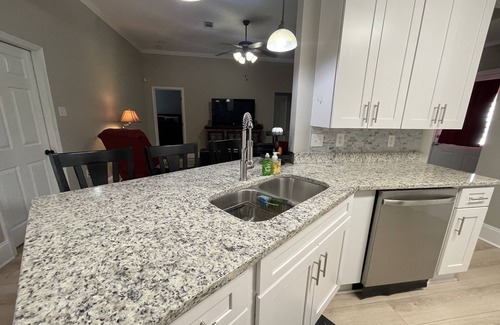 Come enjoy your stay in our Bright and cozy home. With its traffic free streets, and family oriented subdivision, its a great spot for anything from quick getaways to family vacations. Its in a great location, not only 20 minutes from Mississippi and 30 minutes from downtown New Orleans, but its in the hear of what Slidell has to offer. Private backyard that is fenced in is great for unwinding or entertaining. House is newly renovated with a very open floor planned is equipped with the top of the line appliances, tv and many other amenities.