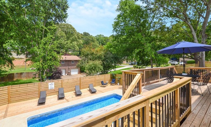 Yes, this Woodstock house has a swimming pool. Check the Facility Overview section for details about the pool and other available facilities.
