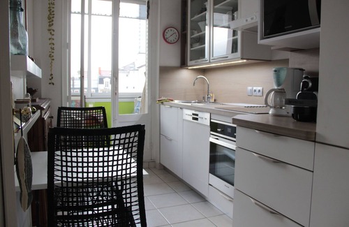 This apartment is located in a residential building where it should respect the neighborhood: the festive evenings, noise pollution are not suitable. It will be for you the same comfort. Enjoy this 755 sq ft apartment on a high floor (elevator) with balcony planted street and conservatory courtyard. Bright and comfortable, crossing east-west, located in a busy area, you can go on foot to visit the main places of the city. Living-dining room and balcony (double glazing), Separate kitchen open veranda, 2 comfortable bedrooms (1 bed 1,60m and another 1.40m), a shower room with Italian . WC. Guard in the building. 4 people maxi.