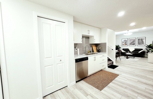 This cozy and spacious 2 bedroom basement suite in the lake community of Mahogany has everything you need for a peaceful and relaxing stay. Private entrance with self check-in. Catch up on your favorite shows on Netflix, Amazon Prime plus more. Smart speakers are available in the suite for your Spotify playlists. The suite comes fully equipped with a TV, fridge, microwave, smart thermostat, kitchen with utensils, dishwasher, washer/dryer. A desk is also available in the suite for remote work.