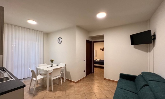 The ERMES apartment in the brand new residence "il Pantheon" welcomes you just 50 meters from the seashore to offer you a relaxing and regenerating holiday. Featuring a modern and comfortable environment, you will find all the necessary amenities for a pleasant stay. The apartment is equipped with air conditioning to ensure maximum comfort even on the hottest days. The kitchen is fully equipped with all necessary appliances and utensils to prepare your favorite meals which you can enjoy on the veranda. Furthermore, the residence offers its guests a reserved parking space and an outdoor shower. The ERMES apartment in the "Il Pantheon" residence is the perfect choice for an unforgettable holiday.