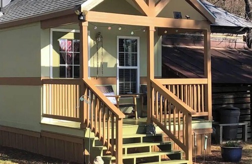 This sweet, eclectic Tiny House is ready to welcome you for a peaceful getaway. Enjoy expansive views from the front porch. Use the quiet time to finish your novel or decompress from the stresses of life. Walk the property, fish in the pond, or roast marshmallows at the firepit. We welcome your well-mannered pets. This location is perfect for those who want to get away, but who also want the conveniences of life just minutes away.