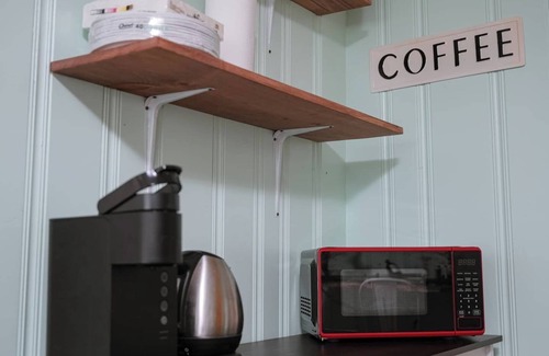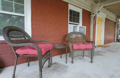Enjoy the private patio space with a farmhouse theme inside and upgraded memory foam mattresses. We've got a king bed for your comfort and a 50" smart TV to relax with. Our guests enjoy their own workspace as well as custom cut live-edge dining table made from Long-Leaf Woodshop right here in Wetumpka. We're big fans of the small details and we've tried to include everything to make your stay more pleasant.