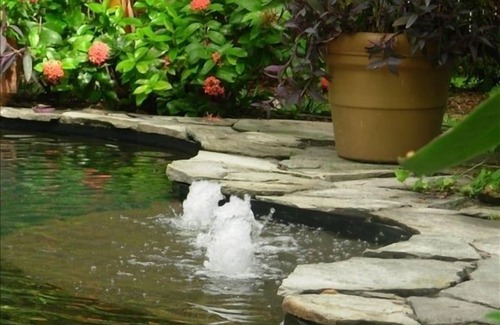 Feed the turtles and Koi in the Koi pond. Take a dip in the lagoon pool (not heated) or just relax on the hammock under the tiki hut. Landscape lights on at night create a romantic setting for couples. "About the cottage", dine in style inside or out, upscale Bohemian furnishings combine with eclectic original artwork set the stage for a truly awesome holiday experience. You will be hooked and be back like so many of our guests, again and again.