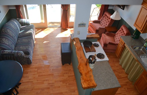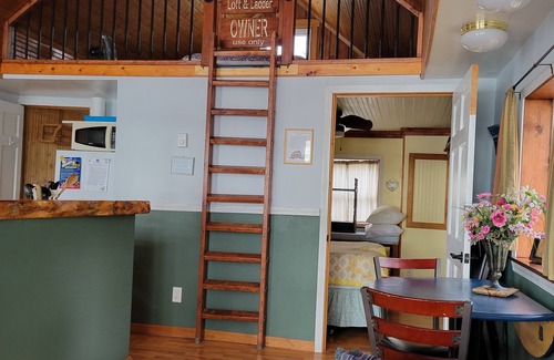 The bedroom has a queen size bed with window seat for storage during your stay. Living area has a queen size fold out couch. The kitchen is well stocked with everything you should need during your stay, including a coffee maker, electric griddle, toaster, hand mixer and toaster oven and a few basic spices.
