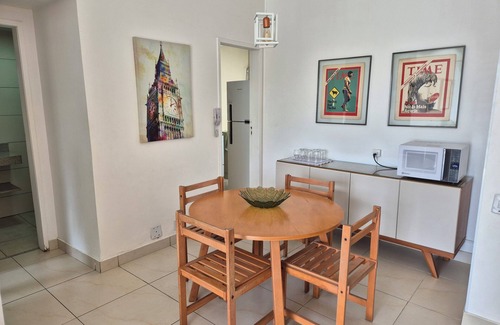 Cozy property 200m from Praia do Forte, with garage and 24-hour doorman. Located on a tree-lined avenue and close to restaurants, cafes, bakeries, pharmacies.