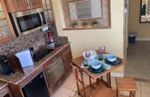 **Accommodations for you (max 3) with one large living and sleeping area, that includes a full kitchen area with garbage disposal, mini dishwasher, mini fridge, dishes, glassware, cupboard storage, K-cup coffee maker with coffee pods.