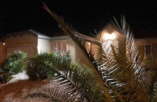 California property w/palm trees & rose bushes. Beautiful sunrises & sunsets. Mt. view.