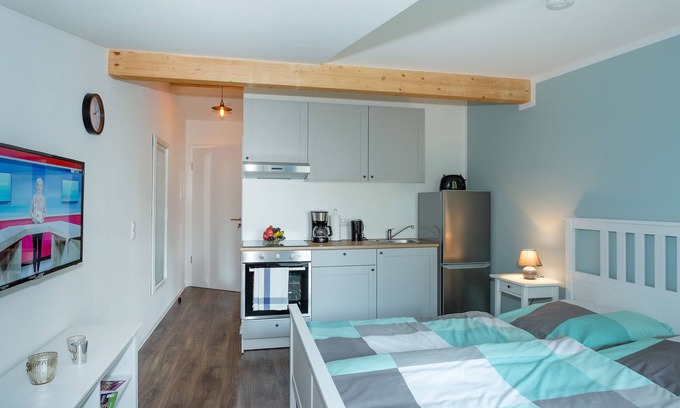 Bright and comfortably furnished apartment for 2 people. Modernly furnished, with kitchenette, flat screen TV, balcony, bathroom with shower.