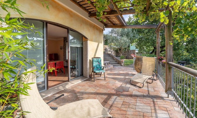 Beautiful apartment at 7 km from Lake Garda with plenty of outdoor space and beautiful views of the vineyards. The accommodation consists of a living room with a double sofa bed, a bathroom with shower and a bedroom with double bed. The garden and terrace overlook a beautiful vineyard and are equipped with garden furniture to meet all needs: Enjoy relaxing moments reading a book or pleasant evenings barbecuing. The nearby Lake Garda offers many recreational opportunities for adults and children. Just 30 km away awaits the romantic city of Verona with its beautiful Arena, where interesting concerts are held during the summer season, and 140 km away the unique Venice, which will fascinate you with its canals and monuments.