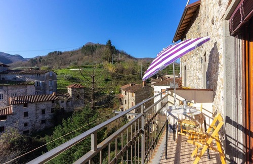 This holiday apartment with balcony overlooking the countryside lies in the historic center of Gioviano, a small stone village set on the hill above the river Serchio, a few kilometres from Lucca (28 km) and on the border of Garfagnana, a mountainous region, ideal for hiking, canoying, visiting caves, fortresses and museums. The area is rich in culinary traditions and village festivals, where yoiu can taste typical local products. Staying here takes you back in time, in the tranquility of the past. In just 10 km you can reach the center of Gallicano where you will find shops and the shopping center, less than 10 km are the thermal baths of Bagni di Lucca, ideal for enjoying a relaxing day. See also ITL272. The entrance is communal for both apartments and the house owner.