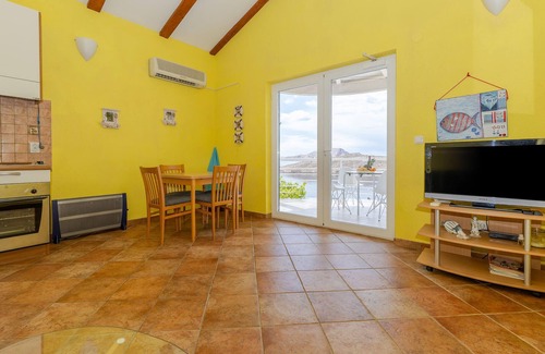 Have breakfast with a sea view in this modern holiday apartment on the Adriatic coast.