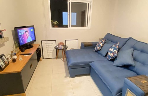 Enjoy a cozy apartment in the desirable southern area of Ribeirão Preto. The living room is equipped with a sofa bed, a Smart TV, and a projector for movie nights. Located next to the new market, offering easy access to restaurants, two shopping malls, and parks. A ceiling fan provides comfort, ensuring a pleasant environment. The covered garage offers convenience and security. There are two bakeries, a gas station, beach tennis, a gym, a church, and an ice cream shop near the location!