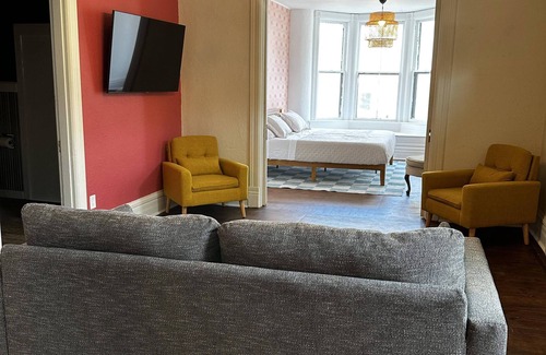 This adorable apartment is located in the heart of downtown Galesville. It features 3 bedrooms, a full bathroom with a claw foot tub, and a large family dining table in the sun room. Located just of the square, this cozy apartment is conveniently located next to shops, bars, cafes, and local stores. It's also located 10 minutes from Trempealeau, the Mississippi River, and Perrot State Park and 20 minutes from La Crosse WI and Winona MN.