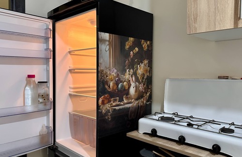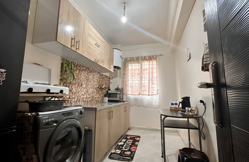 • Unwind in the cozy living room, featuring traditional Moroccan sofas and a TV with Netflix for your entertainment. The fully equipped kitchen includes modern conveniences like a refrigerator, washer and an espresso machine to start your day right. A washer is also available for your convenience. The apartment includes two comfortable bedrooms and a clean, functional bathroom.