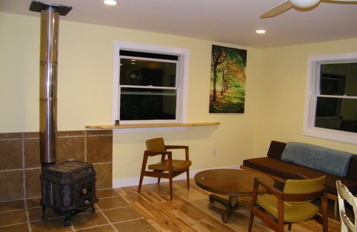 Come stay in our relaxing and quiet barn apartment, new construction with beautiful views overlooking our small farm. The apartment boasts a cozy soap stone wood stove and a cooks kitchen. Located at the heart of our farm, easy parking and access. Large first floor mudroom for any equipment you might need during your stay (skis, strollers, snow shoes) 200 sq/ft of storage space. The apartment is located on the second floor, utilizing the entire 900 square feet. Beautiful sunsets and Catskill views (seasonal). We have some trails and a stream on the farm but we are also conveniently located in the Taconics and also within 20 minutes from the Berkshires and 25 minutes of the Catskills for fun day trips.