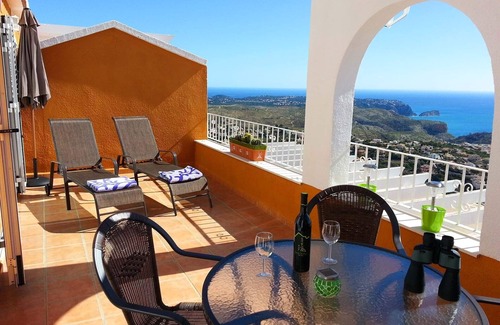 Beautifully maintained and very well equipped holiday apartment with breathtaking panoramic views over the Mediterranean Sea. Our Apartment Vistamar 3 is located in the quiet residential area of Cumbre del Sol (Benitachell, Alicante), just a few minutes by car from the old fishing village of Moraira, which is now a pleasant beach resort with great atmosphere, nice beaches and a wide choice of restaurants which cater for all tastes.