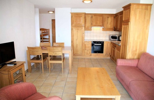 Enjoy a relaxing stay in this cozy flat in Veysonnaz, Switzerland, just steps from the slopes. Perfect for 4 guests, it features covered parking and stunning valley views. Key Features: Valley view balcony Central resort location Fireplace Close to cable cars (250m) Accommodation Details: 2-room, 3-star+ flat Bright living area with fireplace and cable TV Fully equipped kitchen (ceramic hob, oven, microwave, toaster, coffee machine, kettle, dishwasher) Sleeping Arrangements: Living Room: 1 sofa bed (140x200 cm) Bedroom 1: 2 single beds (90x200 cm) Corridor: 1 bunk bed (90x200 cm) Bathrooms: 1 with shower and WC 1 with bath and WC (attached to bedroom) Outdoor Space: Small terrace with garden furniture and panoramic Rhône Valley views Additional Amenities: On-site laundry (digital payment) Ski room 1 indoor parking space (extra paid parking available) Pets welcome Easy elevator access Location: 250m to cable car 25m to shops and winter shuttle 100m to leisure facilities Extra Costs: Tourist tax (varies by region) Security deposit (released post-stay) Alpvision Benefits: Free public swimming pool access in summer/winter (closed during low/mid-season) Participation in the Sun&Fun activity program during peak summer Discounts up to 50% off equipment rentals Optional Services: Bed linen & towels (with renewal options) Comfort service (made beds, towels, toiletries) Final cleaning (fees vary) Pet fee (mandatory final cleaning for pet stays) Extras like gourmet baskets and late check-out