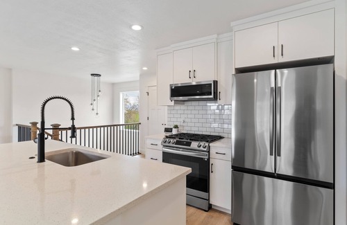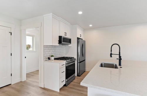 This charming private above-garage apartment offers a perfect blend of comfort and convenience. With two spacious bedrooms and one well-appointed bathroom, its an ideal space for individuals or small families. The heart of the apartment is its expansive kitchen, featuring a huge 8-foot by 8-foot island, providing plenty of space for meal prep, dining, or socializing. The kitchen is fully equipped with modern appliances, including a full-size washer and dryer for added convenience.