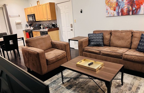 Fully equipped cozy 1 bedroom apartment in the delco suburbs with free parking. A short drive away to restaurants, sightseeing, shopping, parks and other amenities.