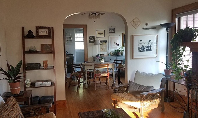 This is a one-bedroom property with a second bed set up in the basement den upon request. You will have the house to yourself when here, but this is my own residence and you will see the evidence of a lived-in, well-loved home. I take care to remove my personal items from commons spaces, and my bedroom and office will be locked. Please make yourself completely at home. You are welcome to read the books, use the dishes and do your laundry. There are textiles and artifacts from my travels, and art I've collected, mostly from friends...and lots of plants.