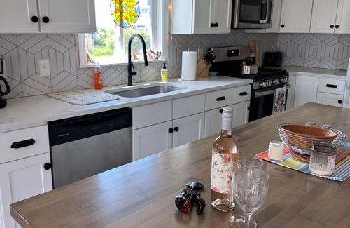 Looking for a quiet place to finish that book, write that song, explore seaside walks, or just get away from it all? Come to our cottage in the charming hamlet of Westport. The cottage is a short walk from the Allen's Pond trail, Westport Town Beach, the Bayside Restaurant, and Gooseberry Island. A newly updated kitchen and interior provide a relaxing place to rest between adventures. There are two bedrooms: one with a queen-sized bed and another with a bunk bed (twin over a full with a twin trundle) that can sleep 4 people. The backyard abuts farmland and has a new patio, outdoor shower, and observation deck on the roof for ocean views.