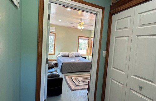 Located in Lee, this delightful bed & breakfast features a master suite with a king bed and a fold out sofa queen bed (for additional guests), perfect for a cozy stay. Farmstay and small-batch craft winery and cidery with onsite tasting room just steps away. Offers an opportunity to relax and reconnect with nature on a rural working homestead while still providing private access to your master suite and bathroom. Off the beaten path with access to goats, chickens, gardens, and wine tasting!