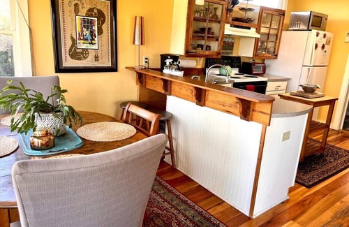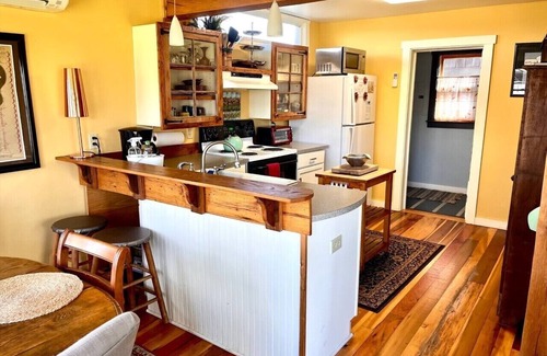 Enjoy this restored log cabin with King loft, 1.5 baths (shower/no tub), fully furnished kitchen, breakfast room & den. Jotul woodstove for rentals during Winter months, firewood provided. Great sunsets from back porch. Wifi, Roku with many popular streaming stations. Separate entrance & separate parking from owners in main house. Hosts have friendly golden retriever, a Griff, (both will show up on your porch to greet and possibly hang out with you, so if you don't really like dogs, you'd probably be happier at another property), and a 12-year old that play in shared backyard. Mini-split heating and air system for individual room control. 10 minutes to Navitat Canopy Tours (coolest zip lines around!), 20 minutes to hike on the Appalachian Trail at Sam's Gap area, 10 minutes to French Broad River, 15 minutes to Blue Ridge Parkway, 12 miles to Wolf Laurel Ski Resort and snow tubing, 10 minutes to great restaurants, art, clubs, people-watching, etc... in awesome Asheville. 5 minutes to quaint downtown Weaverville or Mars Hill, location of Mars Hill College. Cabin located 1 minute off Interstate I-26.