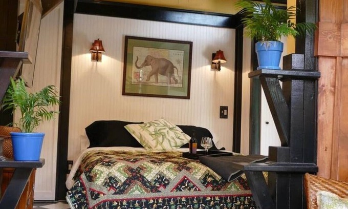 This tranquil getaway is perfect for the travel enthusiast with an eye for the unique and artsy! In the cool fall and winter season enjoy the cozy ambience of the cottage featuring heated floors and a corner soaking tub. Our newly built bungalow features beautiful wood beams, stone, tile heated floor, king size bed, corner soaking tub with large rain shower head and a British Colonial/safari/world travel inspired interior. The cabana looks out into a secluded backyard with used brick patio, mature banana plants and bamboo, outdoor fireplace and gentle water fountains and beautifully planted flower pots. Spring and summer months are perfect for enjoying our lush garden with outdoor fireplace.