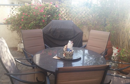 2 bdr/1 bath. Full kitchen with Brand new refrigerator and dishwasher. Full size washer and dryer. Equipped with microwave, stove, oven and all pots, pans and dishes. Coffee maker with all accessories. Brand new chairs covers and linens.. Sleeps 5. Very family friendly. 1 room with queen bed; 1 room with twin bed & trundle bed; Living room has a very comfortable couch. Outside private patio with table and chairs, plus BBQ.. Also includes beach chairs, beach towels, boogie boards and other beach accessories. Outdoor shower with hot/cold water to shower off after swimming in the Ocean. Walk to restaurants and bar. Free WiFi and Direct TV. Air conditioner in Master Bedroom and Living room.