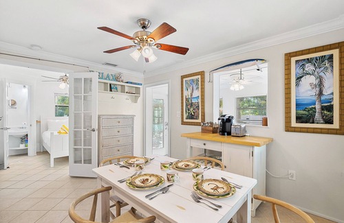 Anna Cabana Bungalow #1 delivers what couples want most: a romantic, affordable beach retreat in the perfect Holmes Beach location. You're 100 yards from the Gulf, steps from Publix and restaurants, and surrounded by tropical privacy. The completely renovated 1950s bungalow offers modern comfort in an authentic Old Florida setting that guests return to year after year.