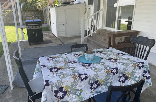 This adorable beach cottage is located in Chicks Beach. Walk to beach is only 2 blocks away. Walk to Commonwealth brewery and other local hot spots. Fenced private front yard. Shared laundry area. This unit does have a attached apartment next to it. Back yard shared private front yard Out door shower , grill, stocked kitchen. There is a outdoor grill area with covered back porch. Pet friendly with approval. 2 car parking only.