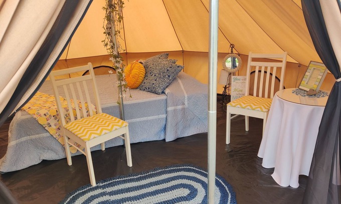 Peace of Paradise is what you'll find in 1 of our 5 quaint and cozy Glamping tents along the river, overlooking the spectacular river views! It's surreal beauty from every angle, tranquil peace and calm! A short walk takes you to the rivers edge where Bass and Pike are a delight to every fisherman! Your experience includes, but is not limited to, an open fire pit for cooking, table and chairs for eating, drinking water, dishwater, river and mountain views from your site, lamps, phone charger port, shared shower house and clean porta potties. Kayaking, paddle boarding, swimming and relaxing are a few of the charming delights just out your front door. Can't pull yourself away from the glacier blue river views, the charming old fruit trees in the lawn and the cozy campfire at night! Experiencing the western trains rumbling down the valley is a highlight to many campers. (There are no Railroad crossings or air horns near our property.) Just a short 2 miles down the road, a mineral soak awaits you at Quinn's Hot Springs Resort. You can also enjoy a cute, best in the west ice cream shop ten minutes away in the town of Wild Horse Plains, a darling old town which also hosts antique shops, grocery, hardware, hospital and so much more! The old and fascinating town of Thompson Falls and a local Bison range, are less than an hrs drive away!