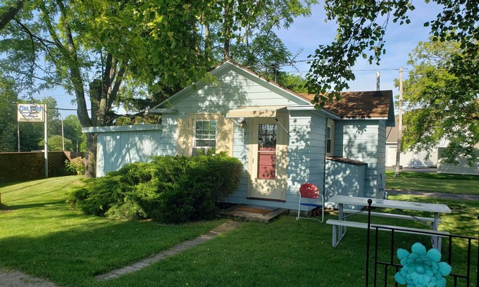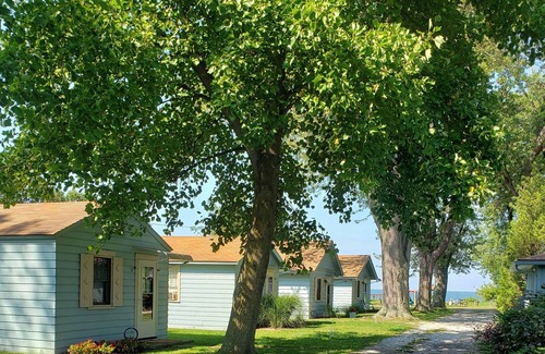 The vintage Cottage, lovingly restored, is one of six on a one-acre property on the southern shore of Lake Erie. The Cottage sits approximately 350 feet away from the shoreline. The Cottage is approximately 450 sq feet (think tiny house!) and features two double beds, a shower bath, Roku television, air conditioning, and a full kitchen. The sleeper sofa provides an extra sleeping option for a total of five persons stay. Linen and towels are provided. 110 feet of Lakefront (size of beach dependent on Mother Nature). Fire ring with firewood provided for s'mores. BBQ grills available for outdoor meals. NEW in 2024: Three sandstone patios at the waterfront provide views of the Lake & its awesome sunsets. If accessibility is an issue, beautiful views of Lake Erie and gorgeous sunsets can also be viewed from the large waterfront backyard to complete your day!