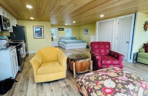 Enjoy the convenience of on-site parking and the essentials, including a bathroom, towels, luxury soaps, a hair dryer, an iron and board, and air conditioning with linens. Whether you're seeking a relaxing getaway or an adventure-filled vacation, this beachfront large studio apartment above the garage in Sullivan has everything you need for an unforgettable & magical stay.