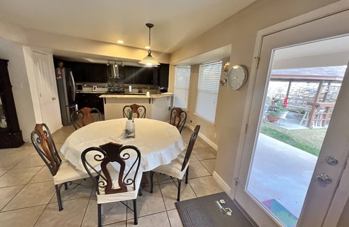 Cozy super clean house in a beautiful neighborhood. Great kitchen with all the amenities excellent TV rooms and big dinner table for 8 new excellent and comfy beds with does for lines and pillows huge backyard with a gazebo